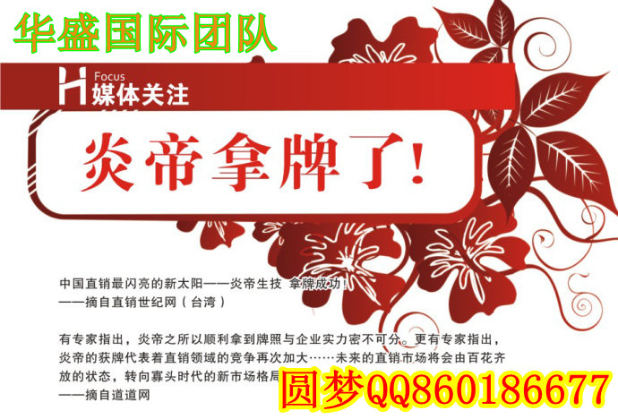 炎帝生物第一品牌華盛國(guó)際團(tuán)隊(duì)超級(jí)領(lǐng)導(dǎo)人圓夢(mèng)老師QQ860186677團(tuán)隊(duì)提供全國(guó)各市場(chǎng)資源共享,講師團(tuán)全國(guó)各地支持。地面直銷(xiāo)、網(wǎng)上直銷(xiāo)和保險(xiǎn)的區(qū)別,到底在哪里?直銷(xiāo)E化,電子商務(wù),您的最佳創(chuàng)業(yè)平臺(tái)!解決了傳統(tǒng)行業(yè)的許多弊端,您我的最佳選擇!(1)保險(xiǎn)賣(mài)的是一個(gè)承諾,一個(gè)無(wú)形的產(chǎn)品,而直銷(xiāo)賣(mài)的是真真實(shí)實(shí),實(shí)實(shí)在在的產(chǎn)品,看得見(jiàn),摸得著,聞得到,所以做保險(xiǎn)比做直銷(xiāo)難度要大得多。(2)從從業(yè)人員素質(zhì)層次