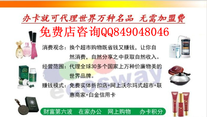 甘肅科士威(維邁)創(chuàng)業(yè)咨詢小康老師QQ849048046TEL:13893606408甘肅蘭州科士威以“互惠營銷”的概念,在生活日用百貨的市場中將消費(fèi)者及經(jīng)營者串聯(lián)起來“以消費(fèi)者為導(dǎo)向”打造的一個(gè)自然消費(fèi)網(wǎng)絡(luò),成功落實(shí)了“消費(fèi)致富”的理念。堪稱經(jīng)典之作!“公司出錢,讓你免費(fèi)開店”這里是更多平凡人的創(chuàng)業(yè)舞臺,這里是一條帶你走向與眾不同的路。