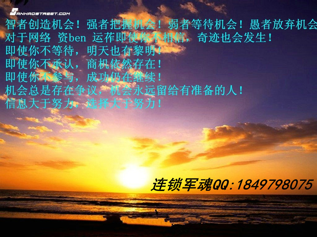 其實(shí)我也是因?yàn)橐粋€(gè)善意的謊言,接觸到了這個(gè)行業(yè),至于這個(gè)行業(yè)他到底怎么樣,眾說(shuō)風(fēng)云,到底怎么樣呢?〓〓〓★【狼魂】—1849798075—★〓〓〓全天在線與您交流★福建福州★隨著幾天的了解,我慢慢的被這個(gè)新生事物所吸引,也理解了異地這個(gè)行業(yè),也能理解為什么用這種方式過(guò)來(lái)了解機(jī)會(huì)。當(dāng)我從事了行業(yè),慢慢了解的越來(lái)越多了,聽(tīng)到最多的是上總的成功史,看到的卻是很多業(yè)務(wù)員艱難的連鎖路,很多人到最后血本無(wú)歸。