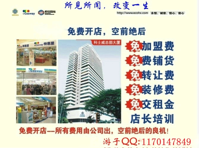 杭州科士威Q1170147849杭州科士威實(shí)體店│杭州科士威旗艦店│杭州科士威形象店│杭州科士威官方店鋪│杭州科士威店鋪在哪里│杭州e科士威店鋪是怎么樣的模式?簡(jiǎn)單說:科士威連鎖商店(網(wǎng)上加實(shí)體店鋪)開放給予個(gè)人經(jīng)銷權(quán),個(gè)人加入這個(gè)系統(tǒng)不論購(gòu)買商品或推薦他人都有獎(jiǎng)金,加入業(yè)主只需購(gòu)買公司優(yōu)惠配套產(chǎn)品,公司會(huì)贈(zèng)送您經(jīng)營(yíng)權(quán)及國(guó)際行銷網(wǎng)站,平面宣傳刊物等。您一加入馬上可以大盤商的價(jià)格選購(gòu)商品,加上時(shí)間及