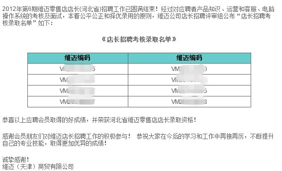 2012年9月19日,公司公布了8名店長(zhǎng)產(chǎn)生,首先恭喜他們!