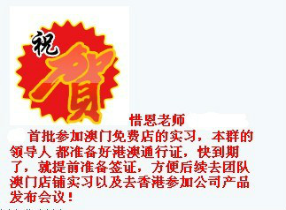 實習店長:惜恩Q7572369222012隨著大陸市場科士威的爆發(fā),我們王者眾贏團隊迎來了澳門的首家免費店,很幸運這次有機會去澳門參加店長實習,澳門是一個非常漂亮的城市。澳門北鄰珠海,東與香港相距60公里,中間以珠江口相隔。澳門是一個自由港,也是世界四大賭城之一。自從澳門回歸中國之后,經(jīng)濟迅速增長,經(jīng)濟繁榮,他比較出名的是輕工業(yè)、美食、旅游業(yè)、酒店和娛樂場,澳門現(xiàn)在也是亞洲最發(fā)達、最富裕的地區(qū)。澳