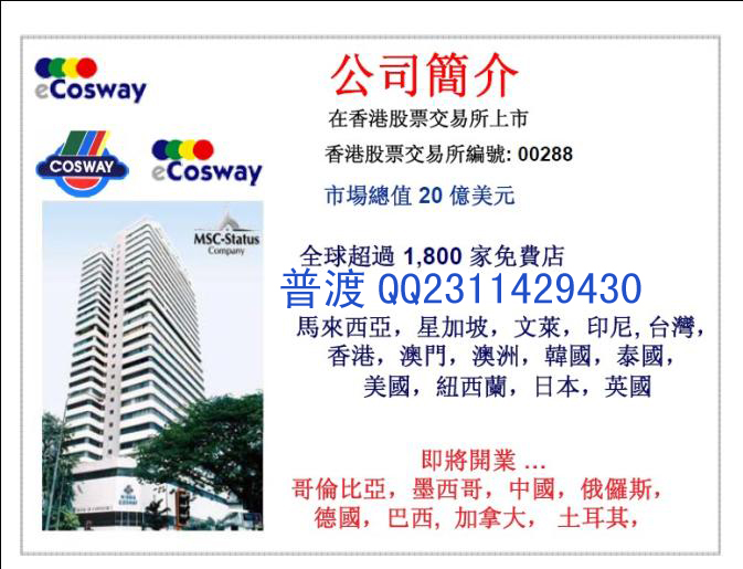 科士威公司目前結合全世界四大生意模式,第一是量販式經營,(大型超市,如沃爾瑪),以量制價以產品集全吸引消費者.第二連鎖式經營,如麥當勞,肯德基,以數(shù)量多,方便吸引顧客。第三人際網(wǎng)絡,如保險,直銷等一對一服務,能夠傳達無微不至的關懷。第四是網(wǎng)際網(wǎng)絡,如雅虎,阿里巴巴等電子商務,依靠互聯(lián)網(wǎng)和配送體系,方便廣大消費者。恒信國際普渡擁有先進完善的進人,育人,留人系統(tǒng),5大事業(yè)網(wǎng)站和豐富的視頻,文字學習資料,每天的網(wǎng)絡培訓方便全國的伙伴學習和交流,讓伙伴輕松起步,快速成長。