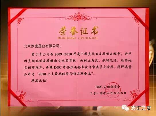 2010年6月北京羅麥藥業(yè)有限公司榮獲“2010十大最具投資價(jià)值品牌企業(yè)”獎(jiǎng)!