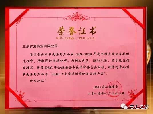 2010年6月北京羅麥藥業(yè)有限公司榮獲“2010十大最具消費(fèi)價(jià)值品牌產(chǎn)品”獎(jiǎng)!