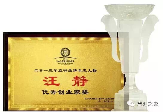 2013年6月, 汪靜董事長(zhǎng)榮獲優(yōu)秀創(chuàng)業(yè)家獎(jiǎng),由第四屆中國(guó)直銷品牌節(jié)頒發(fā)。