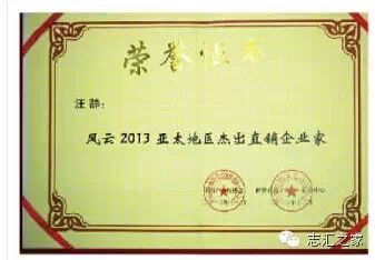 銷企業(yè)家獎(jiǎng)、亞太地區(qū)杰出直銷企業(yè)家稱號(hào),由2013中國(guó)直銷產(chǎn)業(yè)發(fā)展論壇、世界直銷(亞太)研究中心頒發(fā)。
