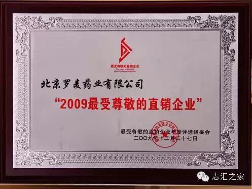 2009年12月北京羅麥藥業(yè)有限公司榮獲“2009最受尊敬的直銷企業(yè)”獎(jiǎng)!