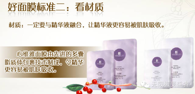 這里告訴你如何去選擇一款好的面膜吧,好的面膜有三大基本標準(以心維雅為例):