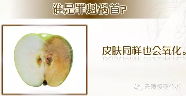 對了,這種情況就是氧化了,而我們的皮膚就像這個蘋果一樣,長期暴露在空氣中,加上紫外線、空氣污染等各種因素導致自由基泛濫,使皮膚出現(xiàn)干燥、缺水、細紋、黯淡無光等現(xiàn)象。