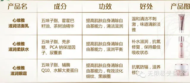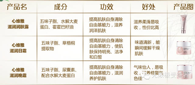 心維雅系列包含了滋潤、保濕、特護三大系列,其最大的特點就是以具有超強抗氧化能力的五味子為核心成份,幫助不同類型皮膚的你解決抗氧化問題,同時還給肌膚帶來潤、軟、滑的親膚感受。