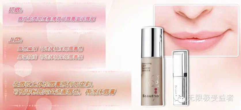 溫馨提示:保護(hù)好自己的唇部就像護(hù)膚一樣,避免唇部出現(xiàn)脫皮、唇紋較深的現(xiàn)象,日常使用“心維雅倍護(hù)潤唇膏”膏滋潤唇部,這樣才能為完美的唇妝奠定良好的基礎(chǔ)。