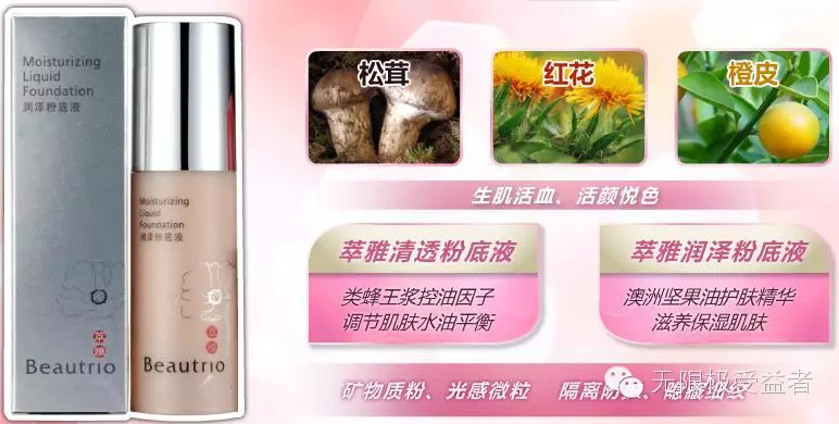 萃雅粉底液秉承傳統(tǒng)中草藥與現(xiàn)代護(hù)膚技術(shù)結(jié)合的品牌理念,融合中草藥精粹及護(hù)膚精華。