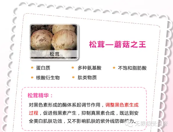 松茸精華、甘草精華:有助于抑制黑色素生產(chǎn)