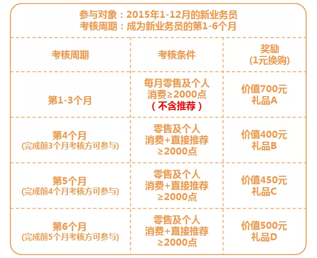 1.2015年8~12月確認的新業(yè)務員,活動考核周期分別順延到2016年1~5月。