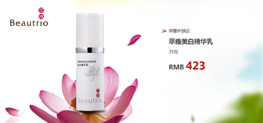 萃雅美白系列套裝將中國(guó)傳統(tǒng)美學(xué)理論融入現(xiàn)代護(hù)膚科技中,提倡美白肌膚、身心與自然的和諧統(tǒng)一,采用珍貴中草藥松茸、甘草、紅景天、紅花的萃取精華,運(yùn)用獨(dú)特的2D2C美白調(diào)理系統(tǒng),經(jīng)過(guò)嚴(yán)格的肌膚測(cè)試,為肌膚帶來(lái)前所未有的健康美白享受。