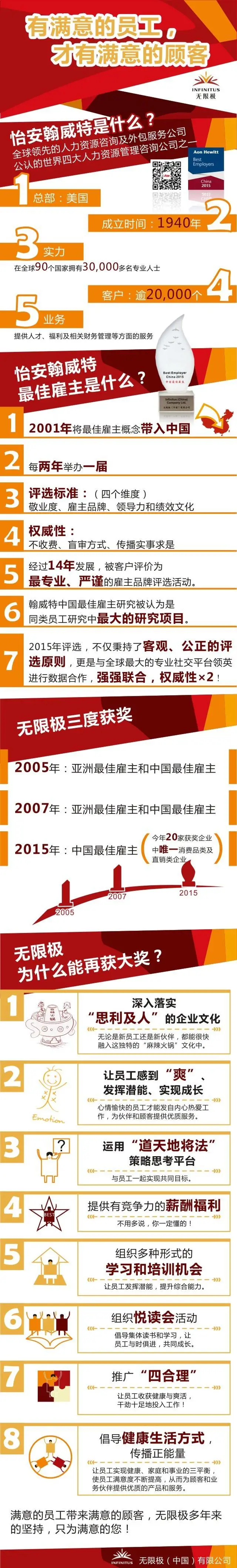 DUANG!時(shí)隔8年,無(wú)限極再次榮獲“怡安翰威特2015年中國(guó)最佳雇主”獎(jiǎng)項(xiàng)。聽到這個(gè)消息,小i可是激動(dòng)萬(wàn)分,真心為自己有個(gè)好老板而高興。