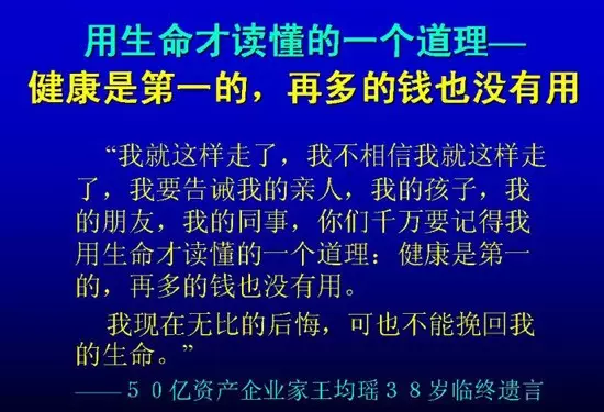 沒了健康,其他的諸如:財富、名譽、地位、面子、奢華、小三、豪車、名宅……都是浮云!