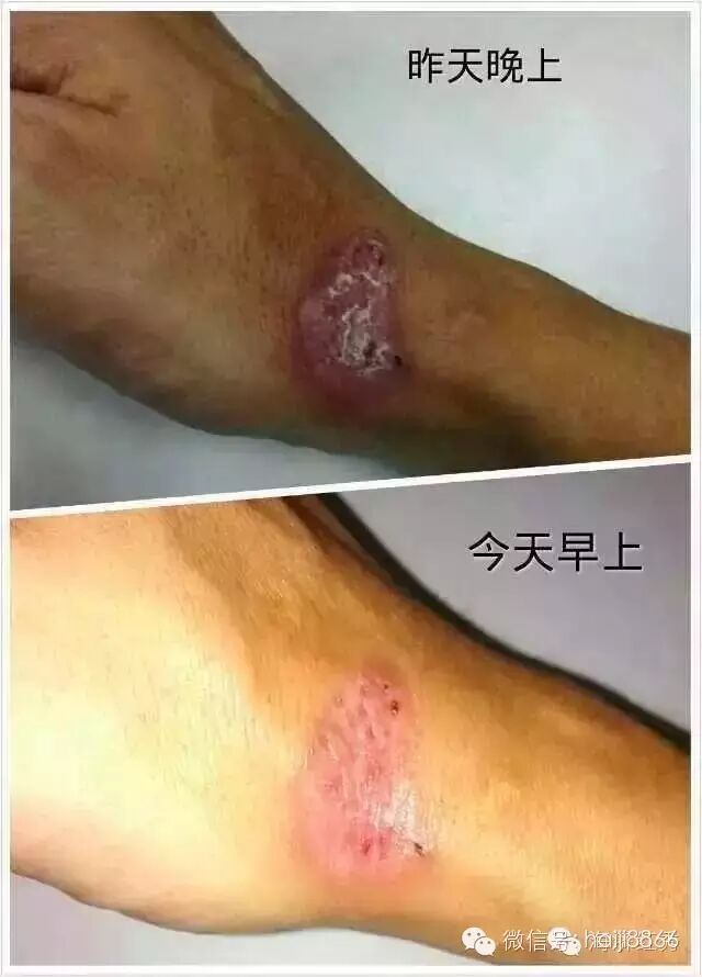 來自海濟(jì)家人的分享:這個(gè)是我的一個(gè)朋友的手,被開水的水蒸氣燙傷的。起了水泡,昨天晚上還有點(diǎn)流水。我昨晚給他擦了我們的羊胚胎素,今天就已經(jīng)開始愈合了。