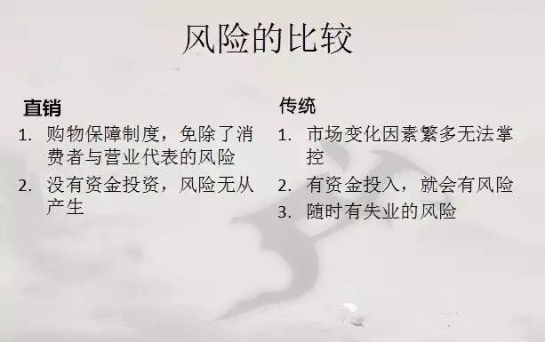 直銷工作:相對較低,公司有終身教育培訓(xùn)。