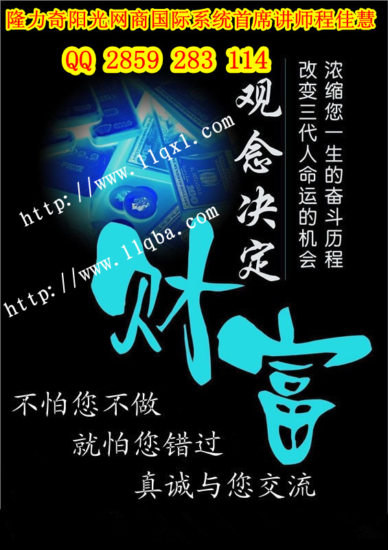 隆力奇e化直銷-住家創(chuàng)業(yè)-傳統(tǒng)創(chuàng)業(yè)者的天堂一臺電腦,一根網線,一份智慧,一次選擇,一生精彩!足不出戶在家做全球生意!一年打拼月薪過萬,兩年努力周薪過萬,三年堅持日薪過萬,專業(yè)網商系統(tǒng)協(xié)助您快速實現理想。詳情請咨詢隆力奇創(chuàng)業(yè)導師萬源老師QQ1163100595電話:15920610910與你共創(chuàng)輝煌 -