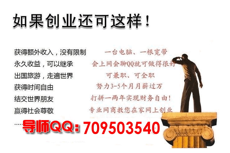 當然,對于沒有創(chuàng)業(yè)夢想,沒有成功欲望,甘于平淡生活的朋友,這些肺腑之言是毫無意義的。但如果你跟我一樣是懷揣著夢想并且在努力的去實現(xiàn)自己夢想的朋友,請你在讀完我上面的話后好好想一想吧!也非常歡迎你能跟我做更深入的交流!成功永遠屬于馬上行動的人。 行動和速度是制勝的關(guān)鍵。 馬上行動絕不拖延。 只有全力以赴,夢想才能起飛。 成功就是簡單的事情重復做。 馬上行動,成功在望,下定決心,一定成功。 成功是做出來的,不是講出來的。 成功者不是比你聰明,只是在最短的時間采取最大量。“一臺電腦,一根網(wǎng)線,一個麥”席卷全球互聯(lián)網(wǎng)財富。21世紀住家創(chuàng)業(yè)。一個千載難逢的創(chuàng)業(yè)良機,長久的互聯(lián)網(wǎng)住家創(chuàng)業(yè)平臺,羅麥首次把消費放在投資前,讓您消費就等于投資,獲取品牌價值過百萬產(chǎn)品經(jīng)銷權(quán)。讓您傭有一家大型網(wǎng)絡沃爾瑪網(wǎng) 商精英李老師在線剖析 內(nèi)蒙古電子商務是什么意思?具體做什么事情?還有,要怎么做?電子商務的發(fā)展前景怎么樣?