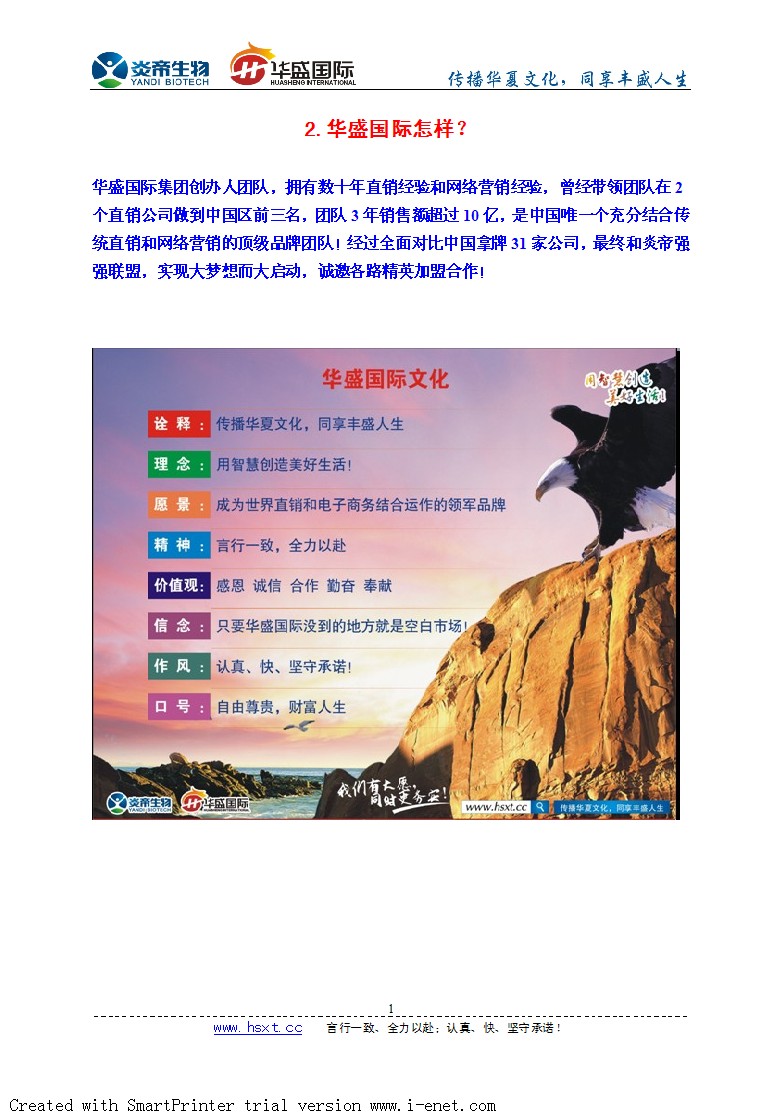 華盛國際集團(tuán)創(chuàng)辦人團(tuán)隊,擁有數(shù)十年直銷經(jīng)驗和網(wǎng)絡(luò)營銷經(jīng)驗,曾經(jīng)帶領(lǐng)團(tuán)隊在2個直銷公司做到中國區(qū)前三名,團(tuán)隊3年銷售額超過10億,是中國唯一個充分結(jié)合傳統(tǒng)直銷和網(wǎng)絡(luò)營銷的頂級品牌團(tuán)隊!經(jīng)過全面對比中國拿牌31家公司,最終和炎帝強(qiáng)強(qiáng)聯(lián)盟,實現(xiàn)大夢想而大啟動,誠邀各路精英加盟合作!
