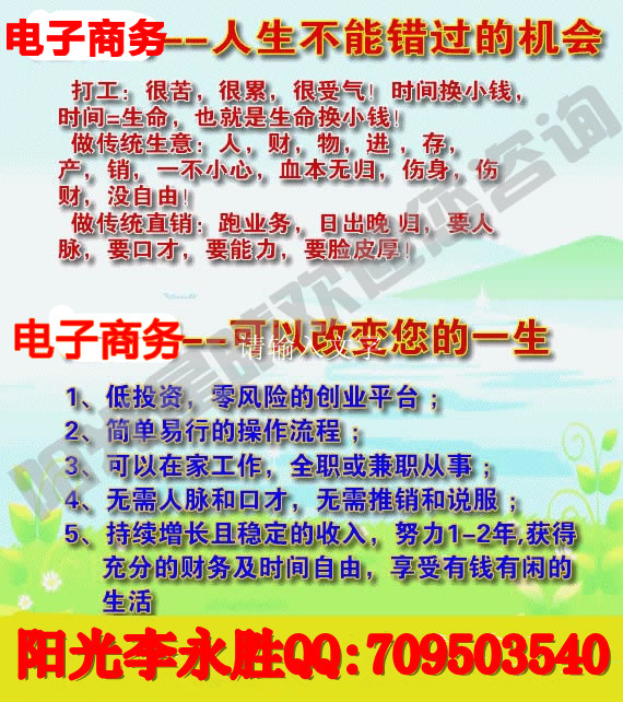 隆力奇陽(yáng)光國(guó)際創(chuàng)業(yè)導(dǎo)師李永勝老師 手機(jī):15184765586 QQ:709503540