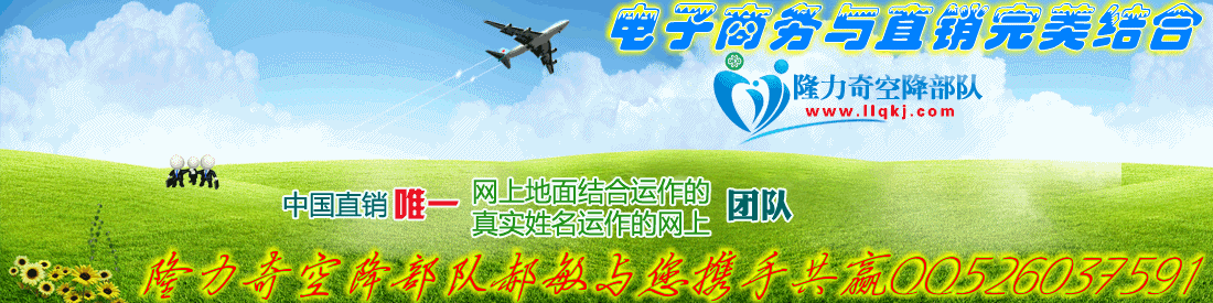隆力奇空降部隊(duì)是中國直銷唯一網(wǎng)絡(luò)地面結(jié)合運(yùn)作,唯一真實(shí)姓名運(yùn)作的網(wǎng)絡(luò)團(tuán)隊(duì)。歡迎咨詢加盟QQ526037591