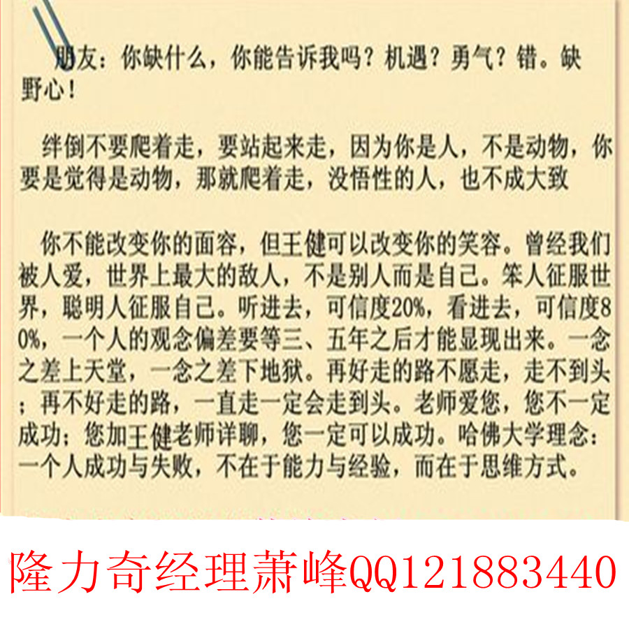 隆力奇定制營銷隆力奇陽光國際聽雨老師QQ121883440!人生格言:“天雨大,不潤無根之草;商道寬,只度有心之人