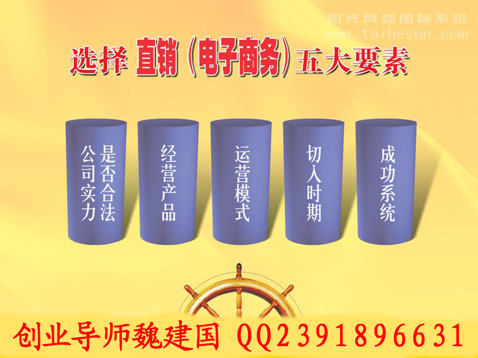 改變?nèi)松鷱母淖冇^念開始,21世紀(jì)已經(jīng)進(jìn)入電子商務(wù)時(shí)代。隆力奇電子商務(wù),為您提供合法陽光的創(chuàng)業(yè)平臺(tái)。真正實(shí)現(xiàn)一臺(tái)電腦,一根網(wǎng)線,喝著咖啡的住家創(chuàng)業(yè)夢(mèng)想。隆力奇陽光國際網(wǎng)商教練誠邀您的咨詢.隆力奇創(chuàng)業(yè)導(dǎo)師,魏建國老師QQ:2391896631(山東人)汪小君老師QQ:1695858308(重慶人)