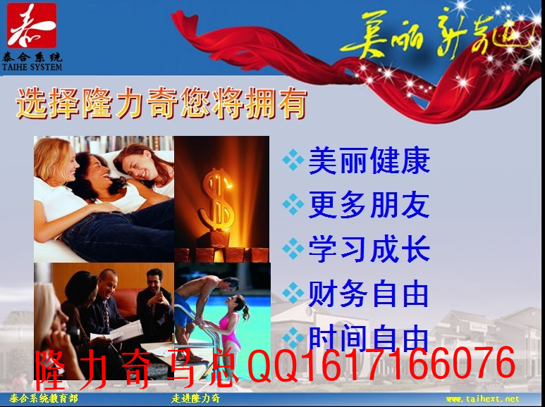 在這里我不能不告訴朋友,隆力奇電子商務(wù)項(xiàng)目,是將直銷無限倍增的市場優(yōu)勢與互聯(lián)網(wǎng)無限的人脈優(yōu)勢相結(jié)合的先機(jī)事業(yè),也是兩大趨勢的完美結(jié)合。我深信,在當(dāng)前社會(huì)環(huán)境下,多數(shù)朋友都希望對自己有個(gè)好的改變。然而,我們都懂的,改變需要諸多的條件,而其中首要的是改變我們的觀念。只有觀念超前了,我們才能期待有睿智的眼光,認(rèn)清當(dāng)前和今后的一個(gè)“勢”。