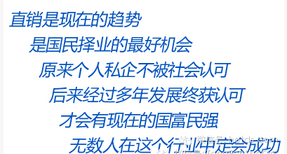 直銷,給那些沒有很多資金、沒有很高學(xué)歷的人們,敞開了唯一的一個致富之門,就看你是否敢于嘗試。